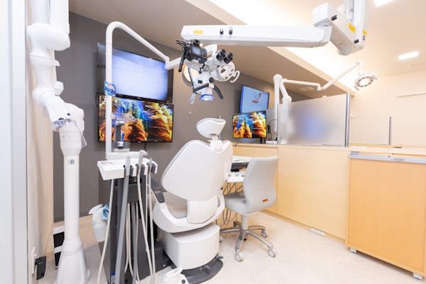 当院では、レントゲン画像や口腔内写真、必要に応じてCTやマイクロスコープの映像をチェアサイドのモニターで一緒に確認しながらご説明しています。実際にご自身の口腔内の状態を見ることで、治療内容への理解が深まり、不安も軽減されます。