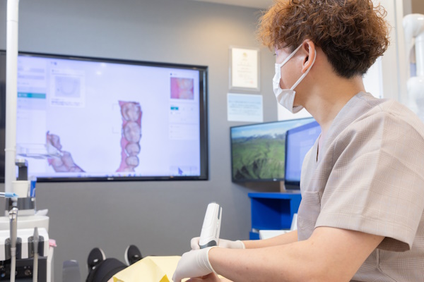 被せ物や詰め物の適合性は、再治療リスクと直結します。当院では、シリコン印象材による高精度な型取りや、信頼できる歯科技工所との連携を通じて、ピッタリと合う補綴物を提供しています。わずかな段差やすき間がむし歯や歯周病の原因になるため、「目に見えないミクロ単位の精度」にもこだわっています。さらに「口腔内スキャナー」を導入。デジタルデータで高精度の歯型を採得することが可能です。